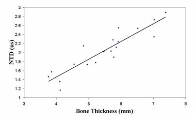 Using CyberLogic's software packages for ultrasound simulation (Wave2000®), we have shown how the Net Time Delay (NTD) technology (U.S.,China and India Patents) that is incorporated in the UltraScan™ 650 enables the bone mass, as represented by cortical thickness and cortical cross-sectional area, to be accurately estimated.