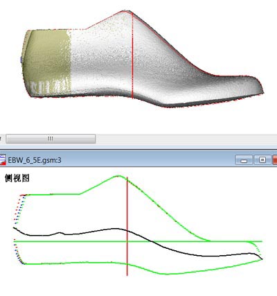 打开鞋楦文件"EBW_6_5E.gsm"。 为于便于显示调整结果,用以下命令打开了一个参考模型:从菜单"文件->导入参考模型",选择并打开文件EBW_6_5E.gsm。 提示:点击菜单"常用->加载鞋楦模型作为参考模型"也能完成同样操作。 点击工具栏上的多视图图标 |