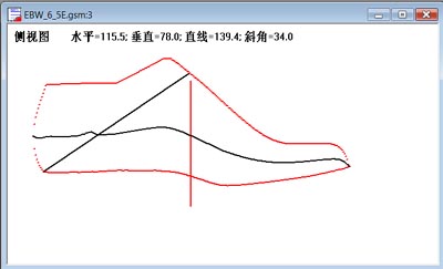 ,可测量鞋楦各组参数,结果显示在右下角的状态栏。测量位置参考实体视图中的蓝线。参数分成四组: