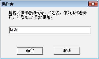 双击桌面上的LastWzd.exe图标启动程序。右图所示的 "操作者" 对话框将会出现,请填入操作者的姓名或代号例如"Li Si",然后点击"OK"按键继续。 在后续的操作中,程序将自动记录该操作者所作的工作。该功能可用于质量管理。 |