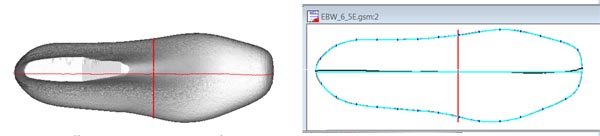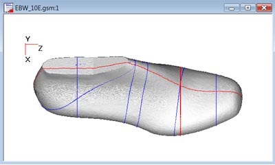 这里介绍将一只鞋楦的头部换到另一只鞋楦。假如你对本文A所生成的方头鞋楦很满意(将方头鞋楦保存为EBW方头_6_5E.gsm),打算将它的头部换到另一鞋楦上,请按以下步骤来完成。