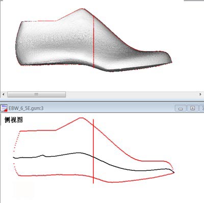 打开鞋楦文件"EBW_6_5E.gsm" 为于便于显示调整结果,用以下命令打开了一个参考模型:从菜单"文件->导入参考模型",选择并打开文件"EBW_6_5E.gsm"。 提示:点击菜单"常用->加载鞋楦模型作为参考模型"也能得到同样的结果。 点击工具栏上的图标 |