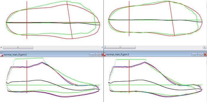 本命令自动将鞋楦和参考模型对齐。下图左是对齐前的视图,下图右是对齐后的视图。