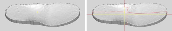 本命令显示或隐藏鞋垫视图中的十字线,如下右图中的红、黄色线。