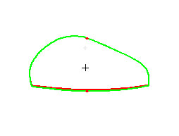 | 点击菜单"工具->修改工具->刮平底部",启动"刮平底部"对话页。 本功能可以将横截面(片)底部的弧线平整。对话页中"数值"栏表示从底部最低点开始向上需要平整的范围,例如"数值"=5mm,意为从底部最低点开始向上5mm是需要平整的范围,超出5mm范围的部分不做修改。对话页中"转动"角(度)用于底部有倾斜的鞋楦 |